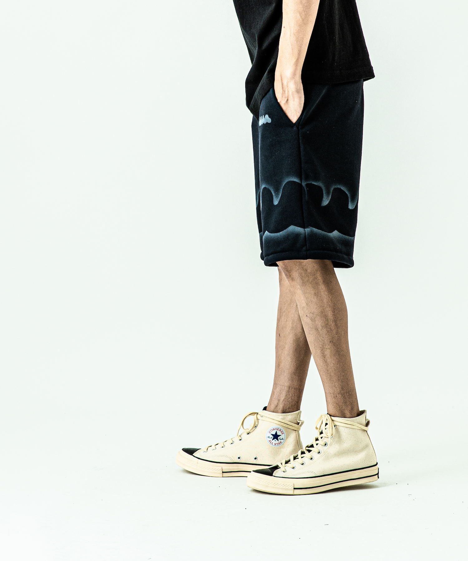| spec | mutaとのコラボレーションコレクション。 ミリタリーパンツに着想を得たワイドシルエットにAcanthusならではのシルエットを融合させたショートパンツ。リラックスしたサイズ感ながら丈感で野暮ったさを解消。右脇には用途に富んだベルトループを1本のみ配置。1点1点ステンシルによるmutawaveロゴを左脇、裾周りに大胆にプリント。 |