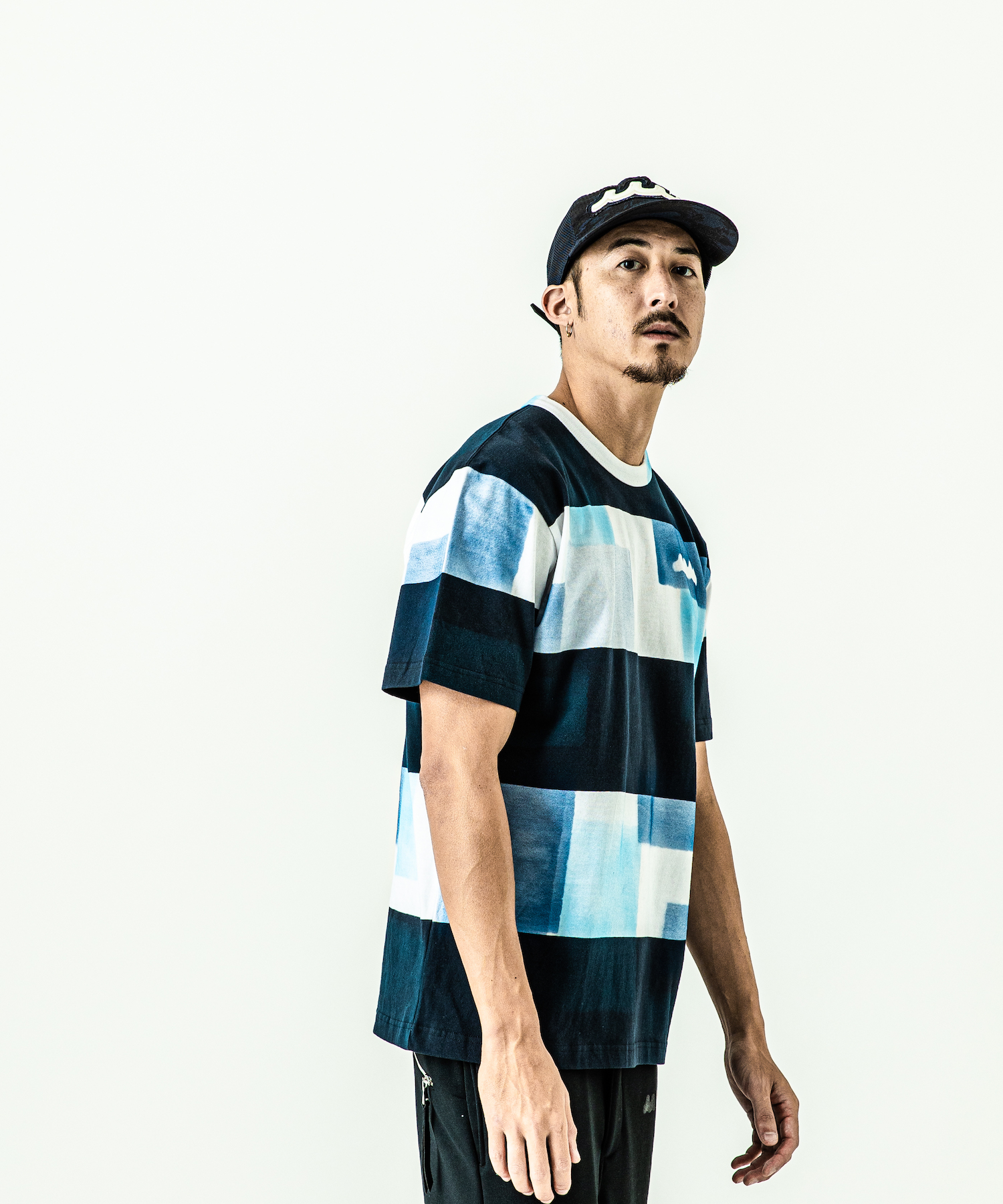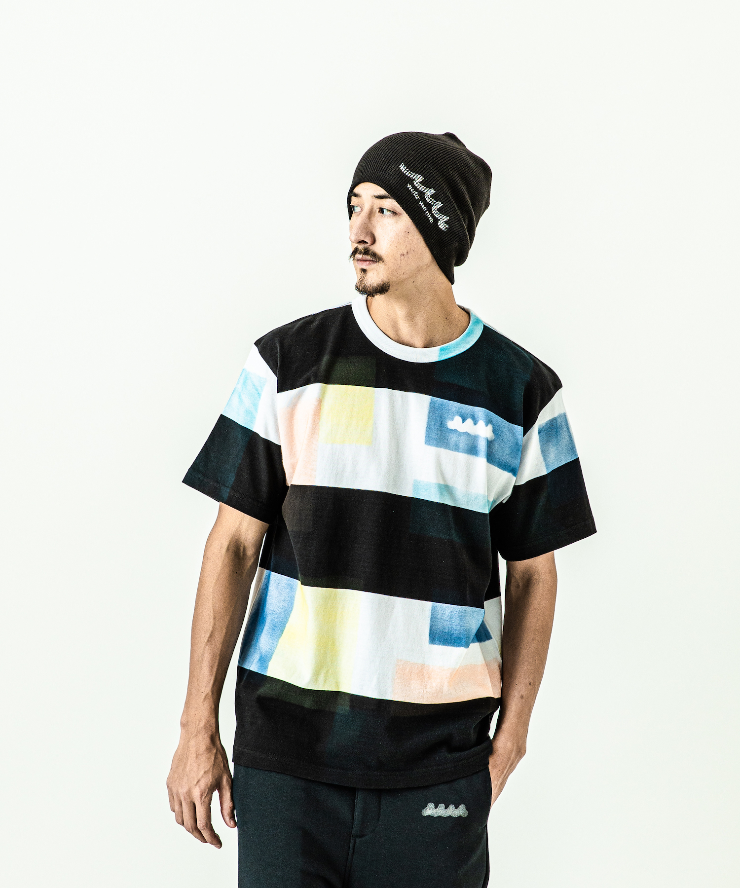 | spec | mutaとのコラボレーションコレクション。 首フライスは2本針縫製したベーシックでスマートなシルエットのTシャツ。パッチワーク柄を、特殊な手法によるハンドプリントにて1点1点を表現している。胸にはmutawaveロゴをステンシルプリント。 |
